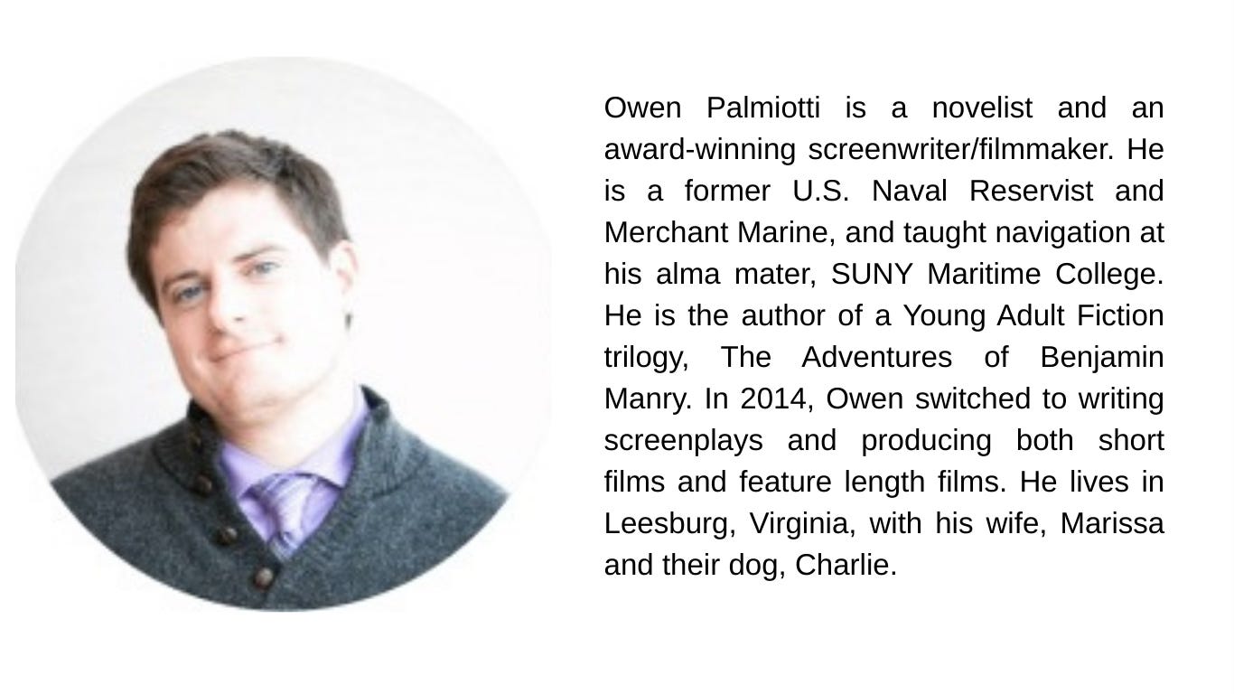 I’ve been writing as long as I can remember. As a kid I had pretty bad dyslexia which impacted my confidence. I was a very shy kid in my earlier years, but after writing and reading and really finding a passion for it, I was able to grow out of my shell. I started writing short stories, poems, and novels. What started as a lucid dream, spanning thirty days straight, I laid out the foundation for my Young Adult Fiction series, The Adventures of Benjamin Manry. The story combines elements of all my favorite things: The Goonies, Back to the Future, Count of Monte Cristo, Pirates of the Caribbean, and Master & Commander. After I finished writing that series, I self-published, figured out how to get into bookstores and coordinated book signings across the country (I was dressed like a pirate, so it was pretty cool). A little over a decade ago, I switched into writing screenplays and got sucked into the vacuum that is film production. At any given time, I’m juggling a bunch of projects, but the one I’m most excited for is called Back on the Water, which is inspired by true events where in 1924, Bill Havens, Sr. was tasked with the impossible decision to represent Team USA at the Paris Olympic Games or staying home to watch the birth of his son. Twenty-eight years later, Frank Havens boards a ship to Helsinki, Finland to the 1952 Olympic Games, vowing to bring home the gold medal his father should have won.