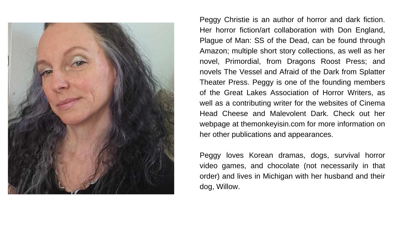 I’m one of the founding members of the Great Lakes Association of Horror Writers. Most of us are from Michigan but we have members from all over the country. I write movie reviews for two different websites, too. I’ve been with Cinema Headcheese since...oh man, the early 2010s! And I also write for Malevolent Dark. I’m more a newbie there but they let me revive my Drunken Monkey Movie Review column and that makes me so happy.